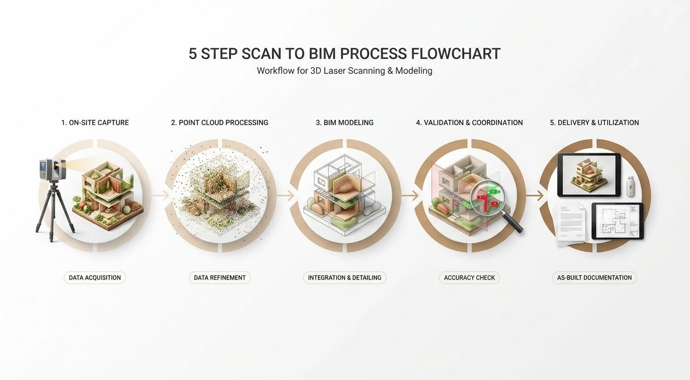 Transforming raw scan data into actionable insights involves a structured five-step process that ensures quality and consistency.