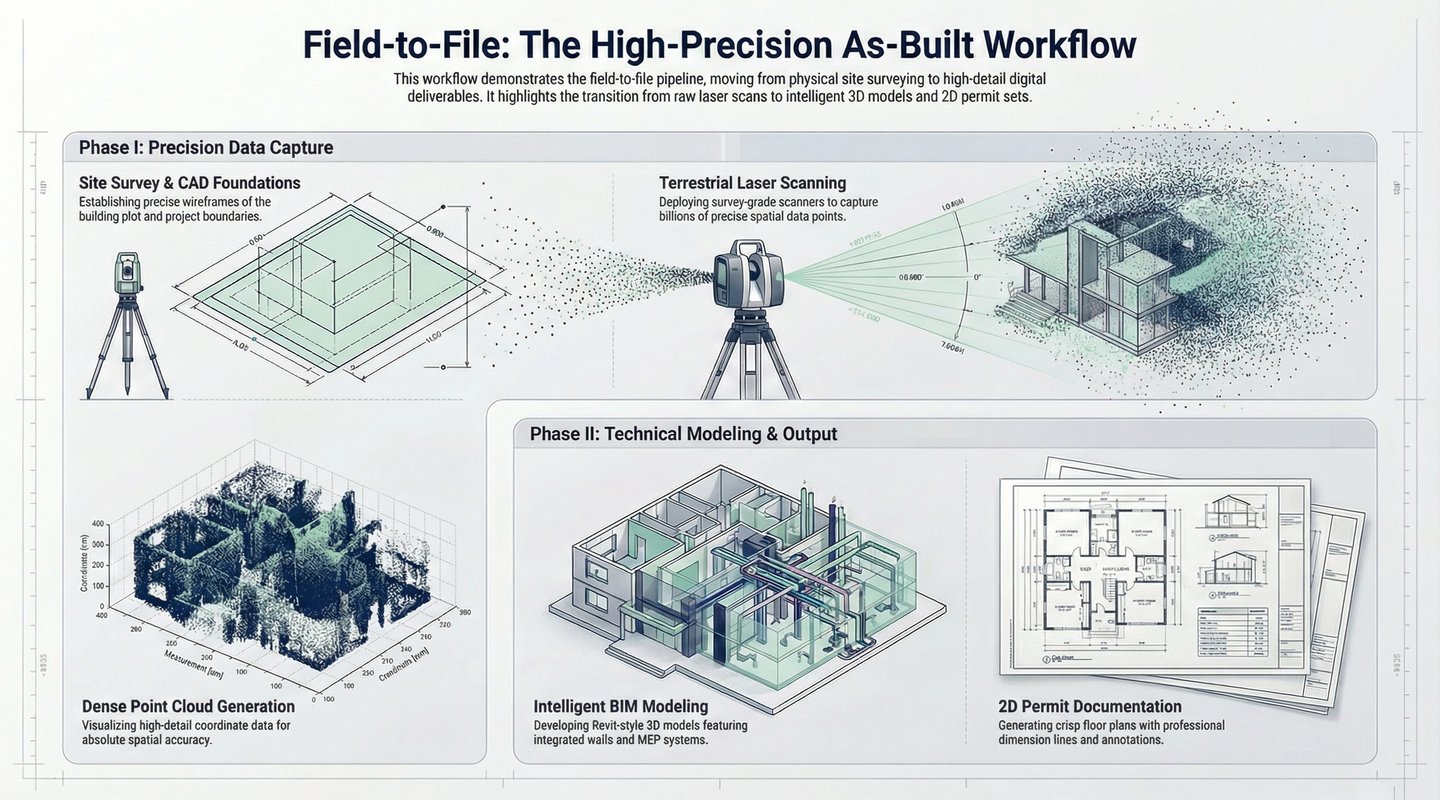 3D laser scanning and BIM-based as-built documentation represent a structural shift toward certainty.
