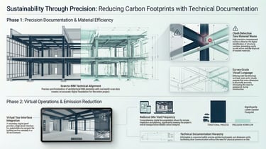 When contractors fabricate millwork, steel, glazing, or mechanical components based on verified measurements, materials fit the first time. That precision directly reduces landfill waste and embodied carbon.