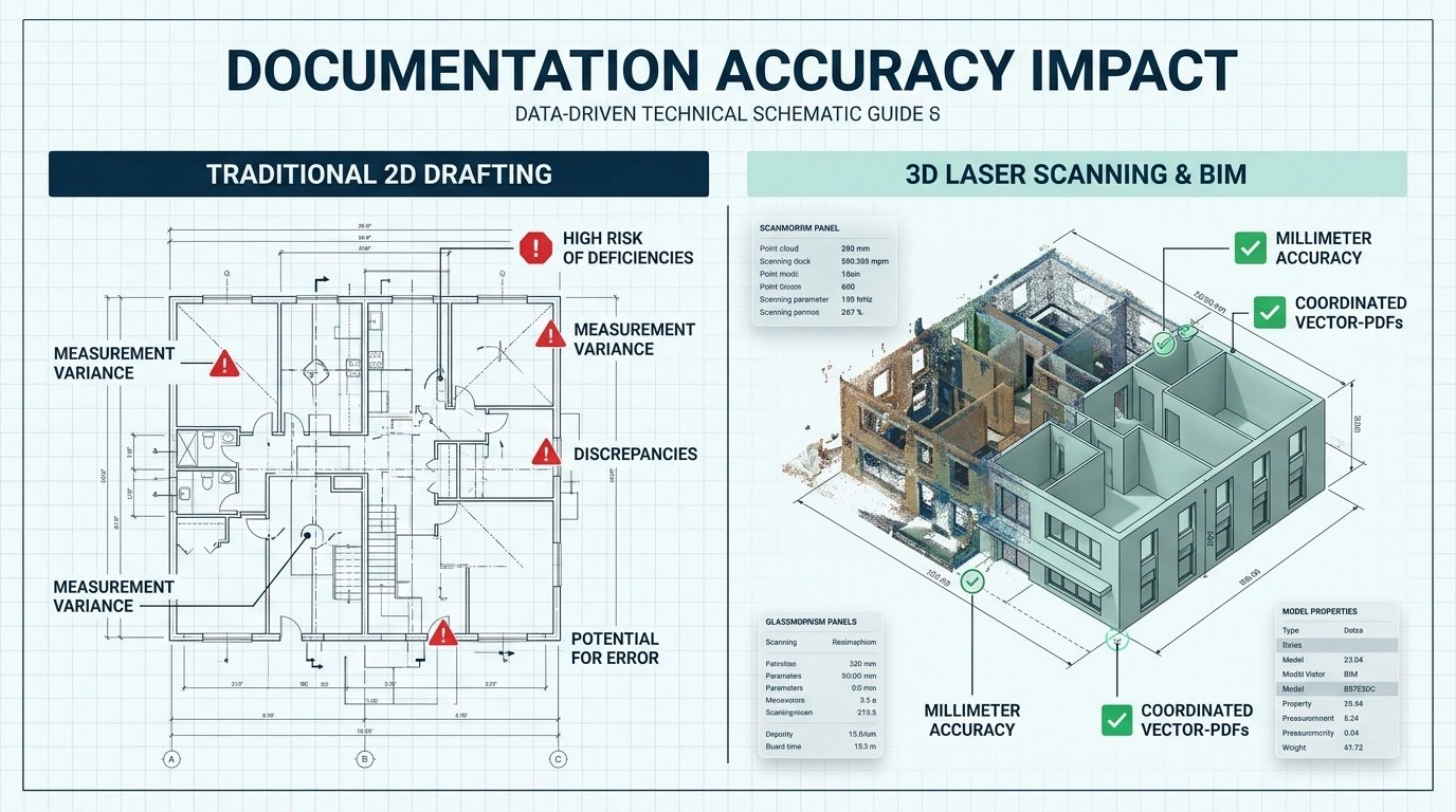 The fastest way to eliminate these issues is to establish a precise as-built baseline using 3D laser scanning, ensuring all architectural, structural, and MEP drawings are built from the same source of truth.